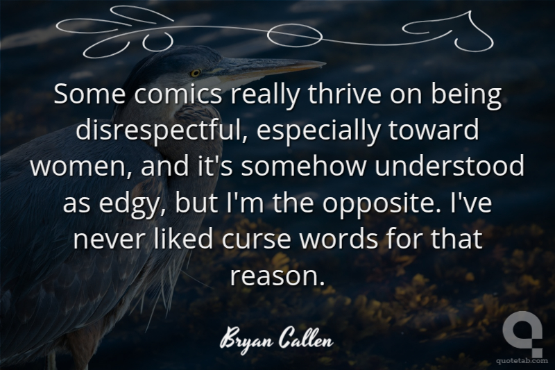 Some comics really thrive on being disrespectful, especially toward women, and it's somehow understood as edgy, but I'm the opposite. I've never liked curse words for that reason. Bryan Callen