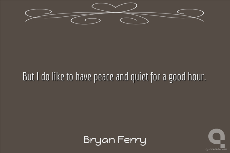 But I do like to have peace and quiet for a good hour. Bryan Ferry