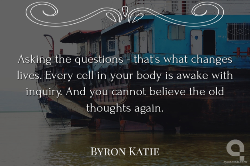 Asking the questions - that's what changes lives. Every cell in your body is awake with inquiry. And you cannot believe the old thoughts again. Byron Katie
