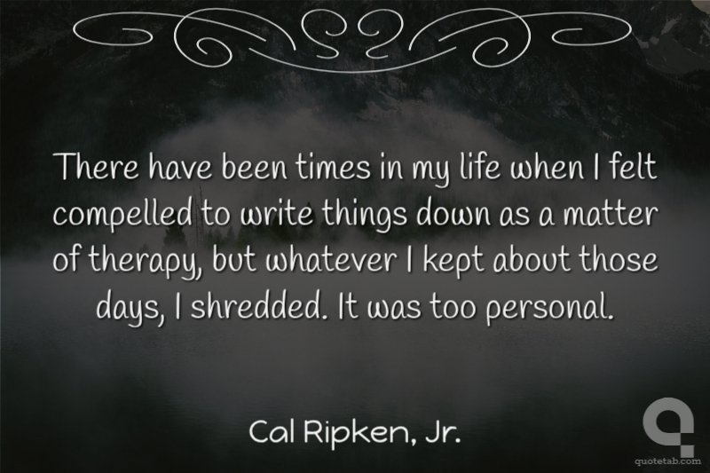 There have been times in my life when I felt compelled to write things down as a matter of therapy, but whatever I kept about those days, I shredded. It was too personal. Cal Ripken, Jr.