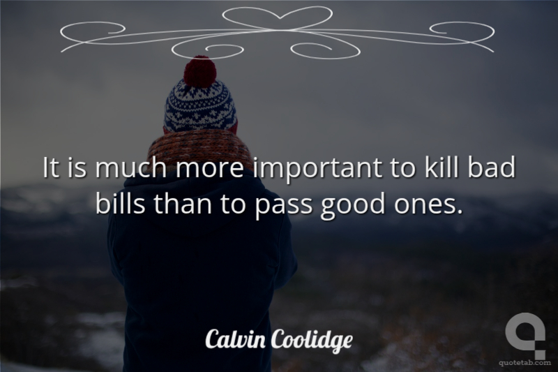 It is much more important to kill bad bills than to pass good ones. Calvin Coolidge