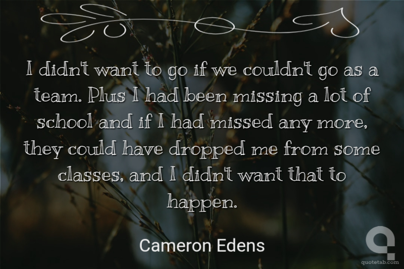 I didn't want to go if we couldn't go as a team. Plus I had been missing a lot of school and if I had missed any more, they could have dropped me from some classes, and I didn't want that to happen. Cameron Edens