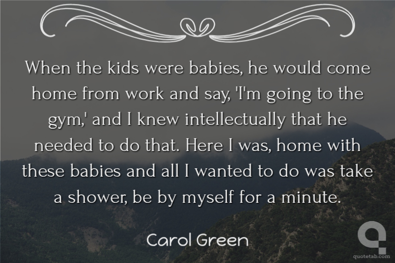 When the kids were babies, he would come home from work and say, 'I'm going to the gym,' and I knew intellectually that he needed to do that. Here I was, home with these babies and all I wanted to do was take a shower, be by myself for a minute. Carol Green