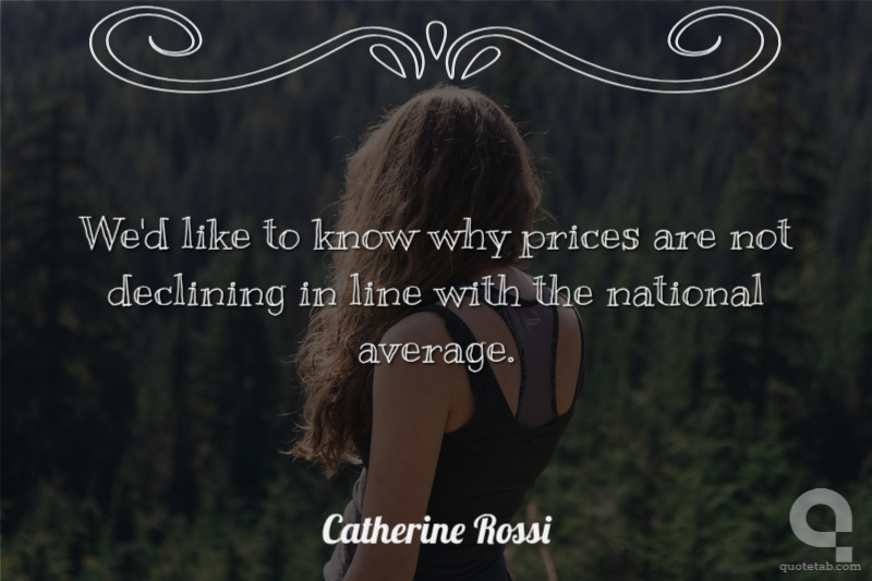 We'd like to know why prices are not declining in line with the national average. Catherine Rossi