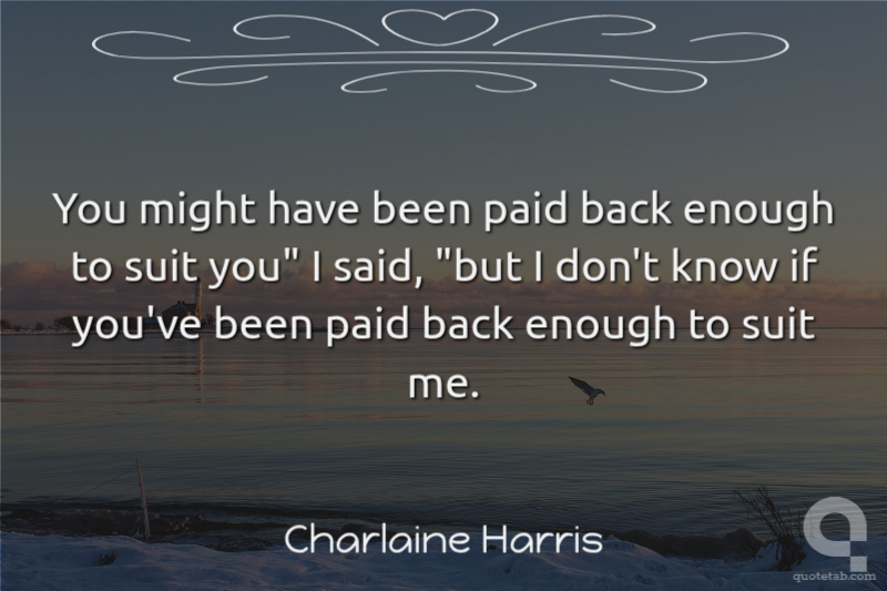 You might have been paid back enough to suit you" I said, "but I don't know if you've been paid back enough to suit me. Charlaine Harris