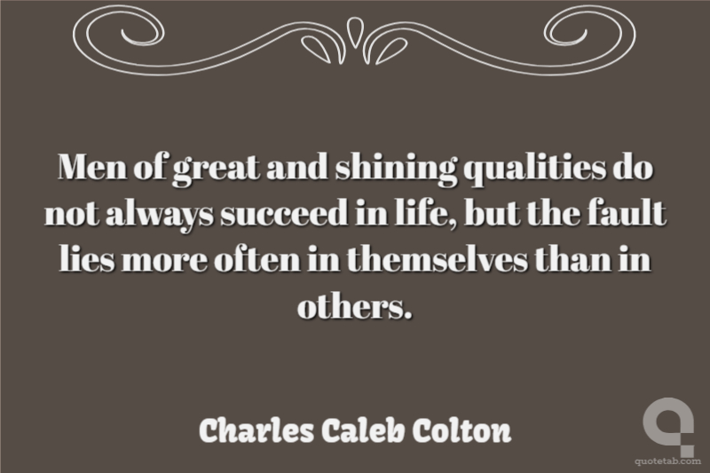 Men of great and shining qualities do not always succeed in life, but the fault lies more often in themselves than in others. Charles Caleb Colton
