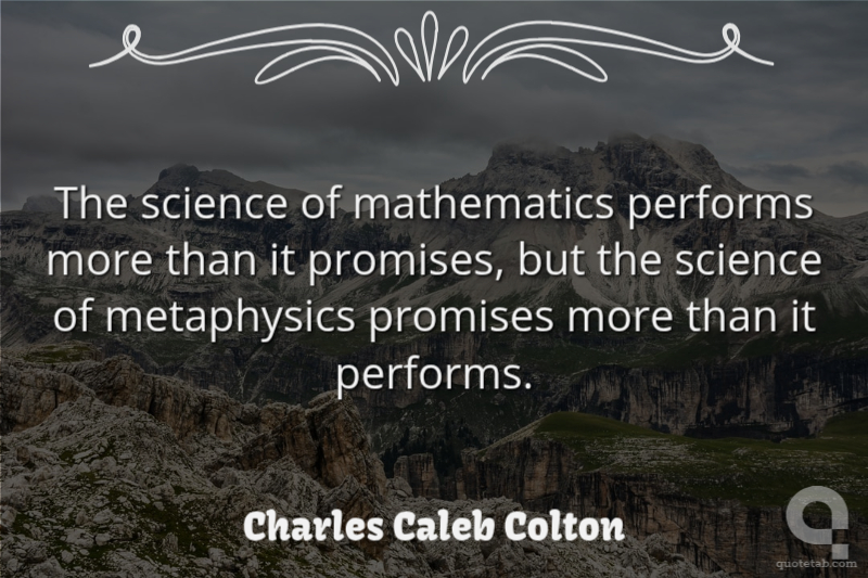 The science of mathematics performs more than it promises, but the science of metaphysics promises more than it performs. Charles Caleb Colton