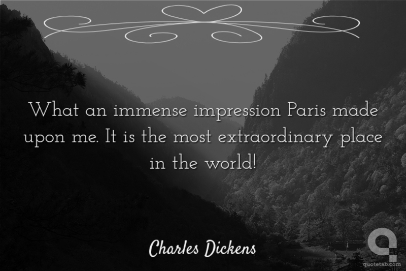 What an immense impression Paris made upon me. It is the most extraordinary place in the world! Charles Dickens