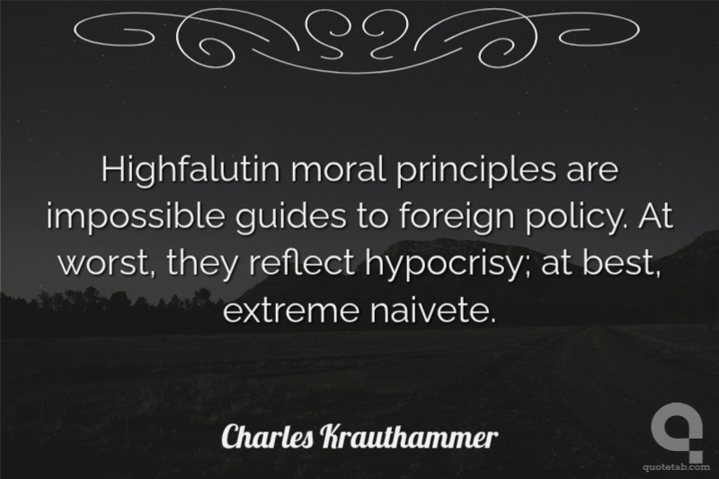 Highfalutin moral principles are impossible guides to foreign policy. At worst, they reflect hypocrisy; at best, extreme naivete. Charles Krauthammer