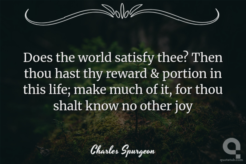 Does the world satisfy thee? Then thou hast thy reward & portion in this life; make much of it, for thou shalt know no other joy Charles Spurgeon