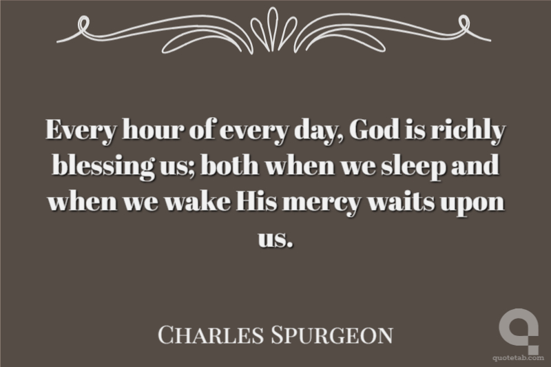 Every hour of every day, God is richly blessing us; both when we sleep and when we wake His mercy waits upon us. Charles Spurgeon