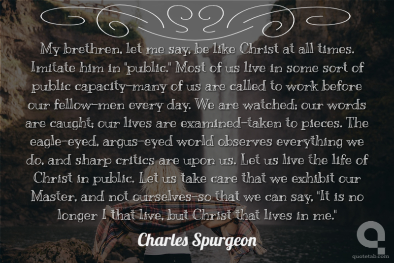 A perfect practice of Christianity would, of course, consist in a perfect imitation of the life of Christ -- I mean, in so far as it was applicable in one's own particular circumstance. Not in an idiotic sense -- it doesn't mean that every Christian should grow a beard, or be a bachelor, or become a travelling preacher. It means that every single act and feeling, every experience, whether pleasant or unpleasant, must be referred to God. C. S. Lewis