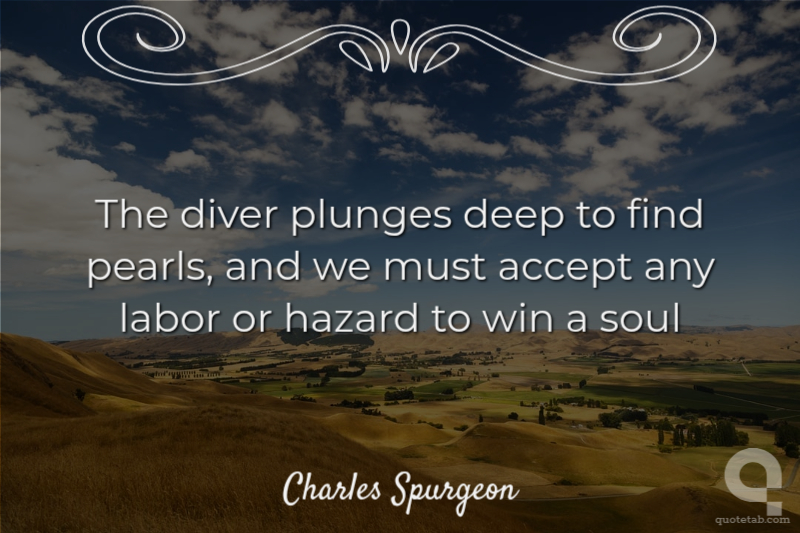 The diver plunges deep to find pearls, and we must accept any labor or hazard to win a soul Charles Spurgeon
