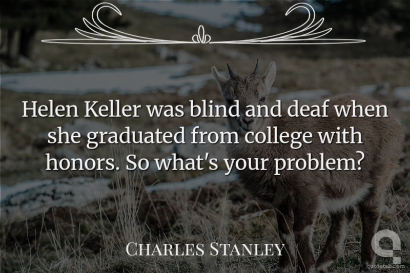 Helen Keller was blind and deaf when she graduated from college with honors. So what's your problem? Charles Stanley