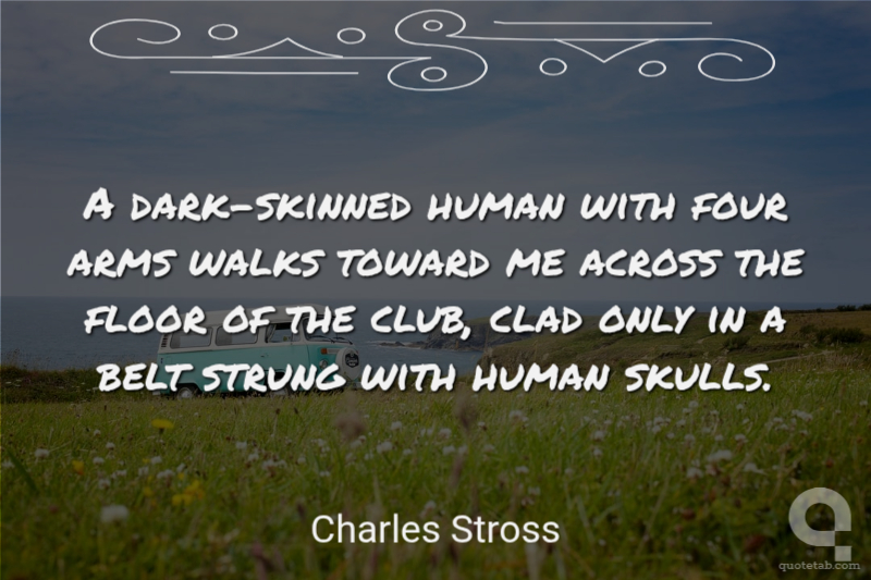 A dark-skinned human with four arms walks toward me across the floor of the club, clad only in a belt strung with human skulls. Charles Stross