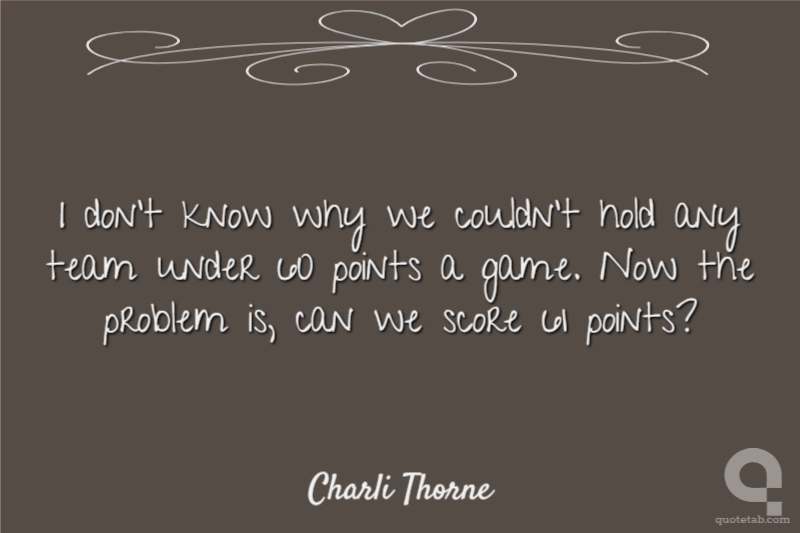 We didn't put up the points we wanted to. Obviously, there are still things we need to work on. Over the summer we're going to get this thing right. Anthony Wollschlager