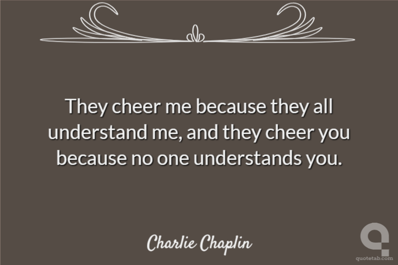 They cheer me because they all understand me, and they cheer you because no one understands you. Charlie Chaplin