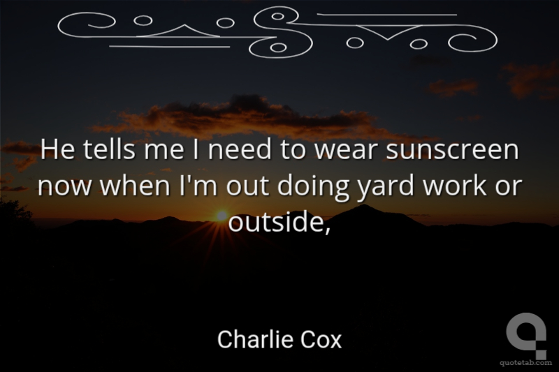 He tells me I need to wear sunscreen now when I'm out doing yard work or outside, Charlie Cox
