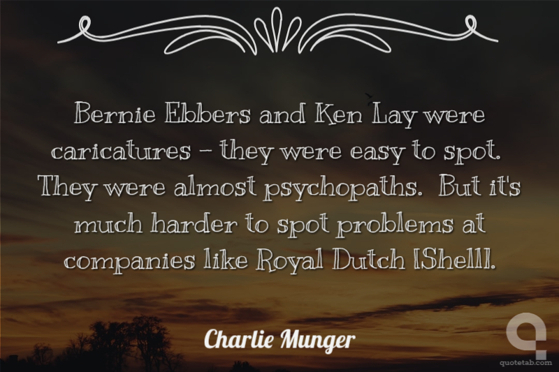 Bernie Ebbers and Ken Lay were caricatures - they were easy to spot. They were almost psychopaths. But it's much harder to spot problems at companies like Royal Dutch [Shell]. Charlie Munger