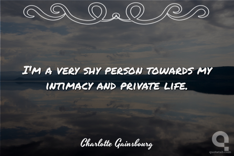 I'm a very shy person towards my intimacy and private life. Charlotte Gainsbourg