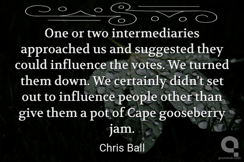 One or two intermediaries approached us and suggested they could influence the votes. We turned them down. We certainly didn't set out to influence people other than give them a pot of Cape gooseberry jam. Chris Ball