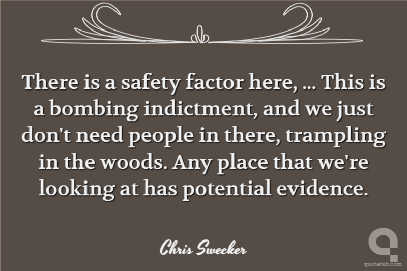 There is a safety factor here, ... This is a bombing indictment, and we just don't need people in there, trampling in the woods. Any place that we're looking at has potential evidence. Chris Swecker