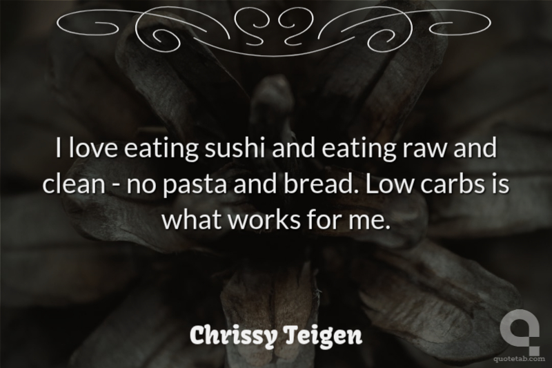 I love eating sushi and eating raw and clean - no pasta and bread. Low carbs is what works for me. Chrissy Teigen