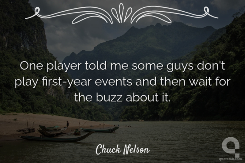One player told me some guys don't play first-year events and then wait for the buzz about it. Chuck Nelson