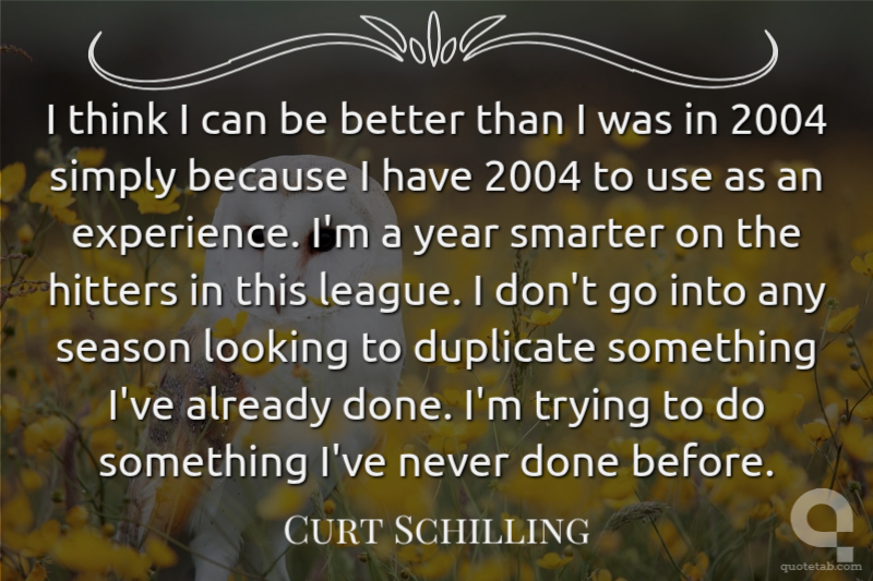 I think I can be better than I was in 2004 simply because I have 2004 to use as an experience. I'm a year smarter on the hitters in this league. I don't go into any season looking to duplicate something I've already done. I'm trying to do something I've never done before. Curt Schilling