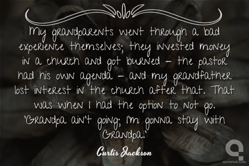 My grandparents went through a bad experience themselves; they invested money in a church and got burned - the pastor had his own agenda - and my grandfather lost interest in the church after that. That was when I had the option to not go. 'Grandpa ain't going; I'm gonna stay with Grandpa.' Curtis Jackson