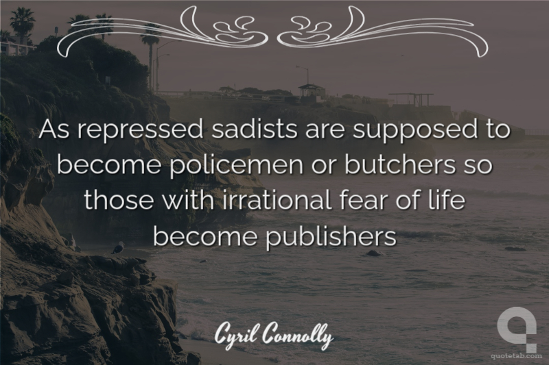 As repressed sadists are supposed to become policemen or butchers so those with irrational fear of life become publishers Cyril Connolly