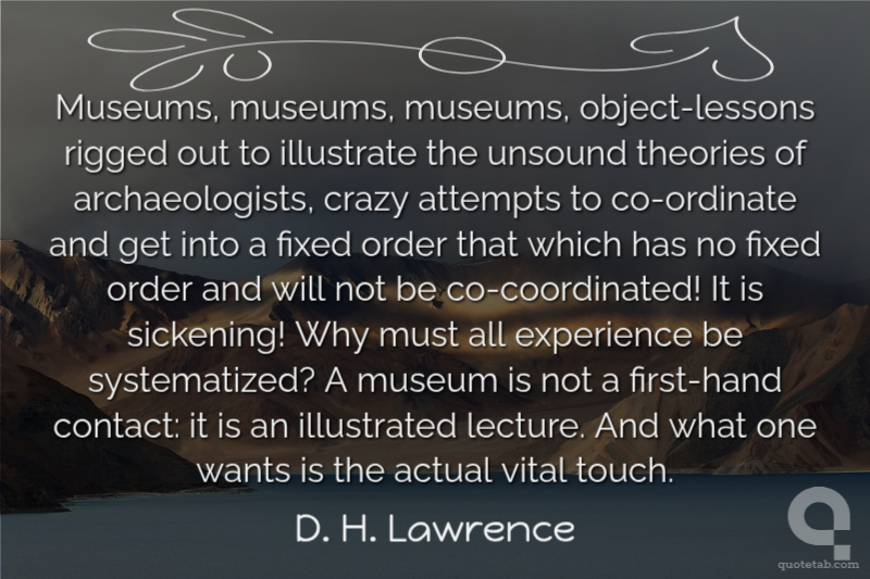 Museums are for dead artists. I'd never show my work in the Tate. You'd never get me in that place. Damien Hirst