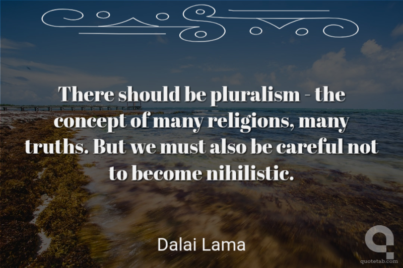 There should be pluralism - the concept of many religions, many truths. But we must also be careful not to become nihilistic. Dalai Lama