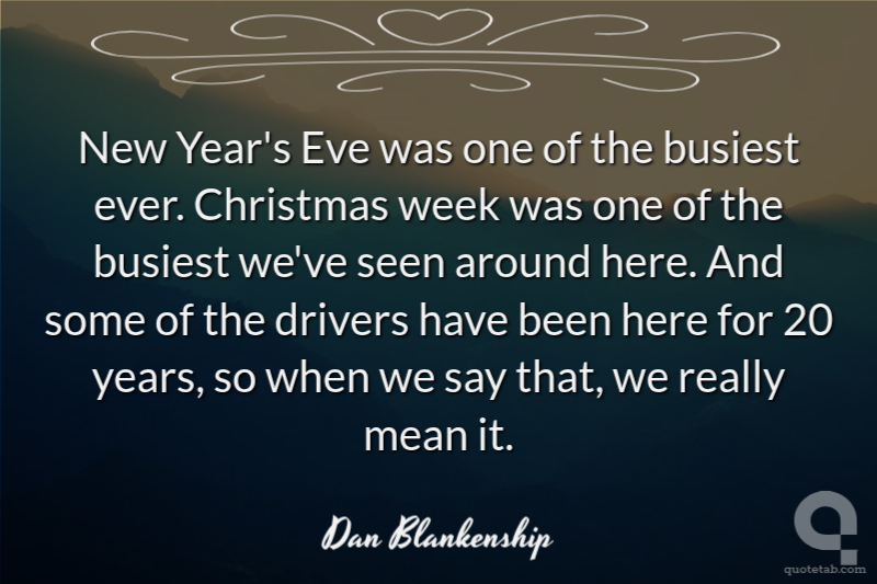 New Year's Eve was one of the busiest ever. Christmas week was one of the busiest we've seen around here. And some of the drivers have been here for 20 years, so when we say that, we really mean it. Dan Blankenship