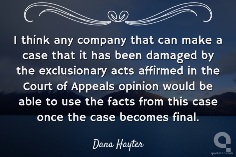 We want to see how it plays out in the court and how it plays out in the market, William Steere
