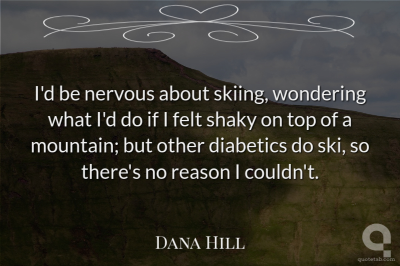 I'd be nervous about skiing, wondering what I'd do if I felt shaky on top of a mountain; but other diabetics do ski, so there's no reason I couldn't. Dana Hill