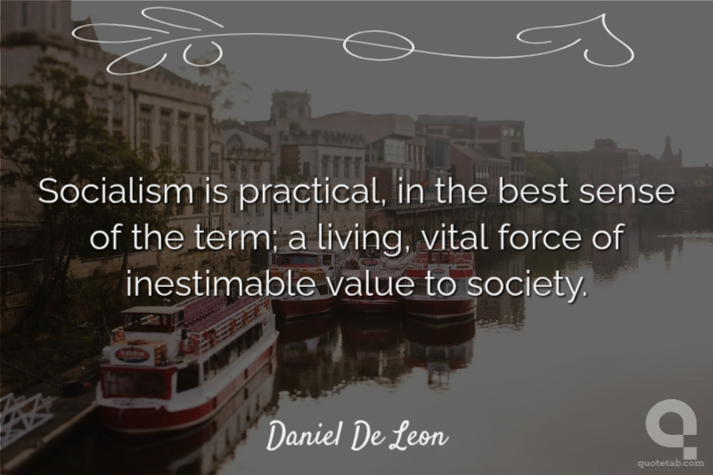 Socialism is practical, in the best sense of the term; a living, vital force of inestimable value to society. Daniel De Leon