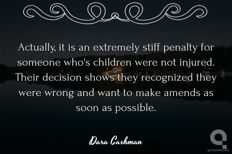 Actually, it is an extremely stiff penalty for someone who's children were not injured. Their decision shows they recognized they were wrong and want to make amends as soon as possible. Dara Cashman