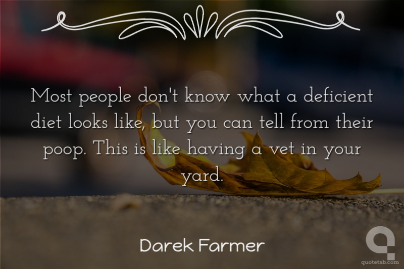 Most people don't know what a deficient diet looks like, but you can tell from their poop. This is like having a vet in your yard. Darek Farmer