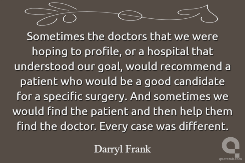 Within every patient there resides a doctor, and we as physicians are at our best when we we put our patients in touch with the doctor inside themselves. Albert Schweitzer