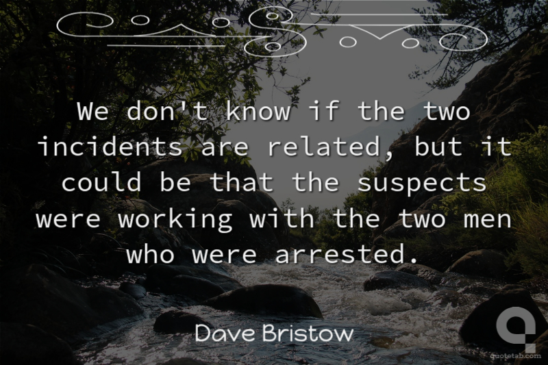 We don't know if the two incidents are related, but it could be that the suspects were working with the two men who were arrested. Dave Bristow