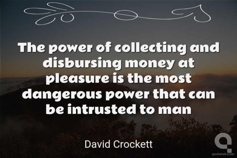 The power of collecting and disbursing money at pleasure is the most dangerous power that can be intrusted to man David Crockett