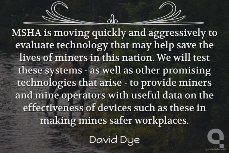 MSHA is moving quickly and aggressively to evaluate technology that may help save the lives of miners in this nation. We will test these systems - as well as other promising technologies that arise - to provide miners and mine operators with useful data on the effectiveness of devices such as these in making mines safer workplaces. David Dye