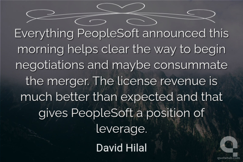When you're running a business, the worst thing that can happen is four different people expressing their views, which may make it difficult to consummate the deal. Don Leach