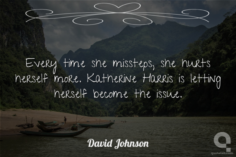 Every time she missteps, she hurts herself more. Katherine Harris is letting herself become the issue. David Johnson
