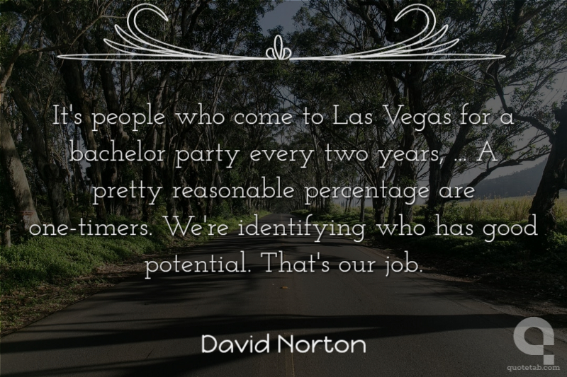 It's people who come to Las Vegas for a bachelor party every two years, ... A pretty reasonable percentage are one-timers. We're identifying who has good potential. That's our job. David Norton