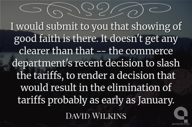 I would submit to you that showing of good faith is there. It doesn't get any clearer than that -- the commerce department's recent decision to slash the tariffs, to render a decision that would result in the elimination of tariffs probably as early as January. David Wilkins