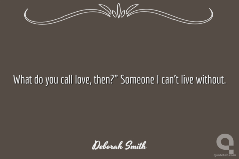 What do you call love, then?" Someone I can't live without. Deborah Smith