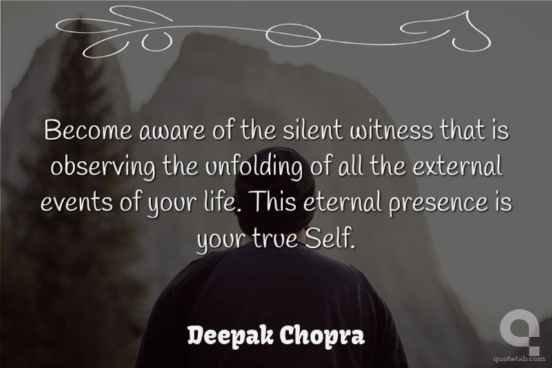 Become aware of the silent witness that is observing the unfolding of all the external events of your life. This eternal presence is your true Self. Deepak Chopra