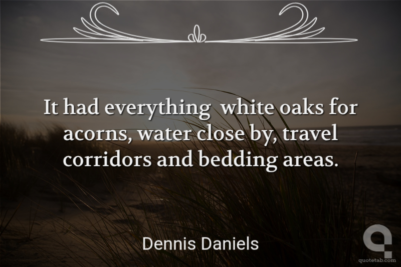 It had everything white oaks for acorns, water close by, travel corridors and bedding areas. Dennis Daniels